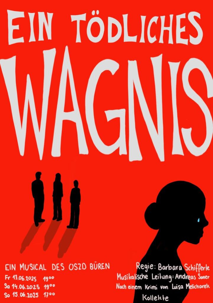 Musical am OSZD „Ein tödliches Wagnis“ 10.06.2025 Schulverwaltung 13. – 15.06.2025 Mensa OSZD/18.06.2025 Zähnteschür Bettlach