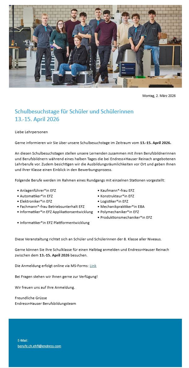 Endress + Hauser: Berufsinformationsabend: 26.03.2026